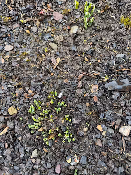 Im Anschluss ging es gleich mit dem Auto los. Es war trübe und regnete. Aber was war das? Und was war das? Ich halte schon seit Tagen danach Ausschau! Heute habe ich sie gesehen: die ersten Schneeglöckchen!