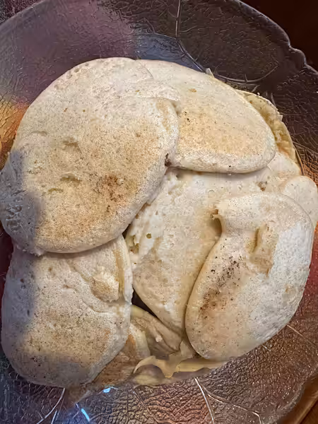 Zum späten Frühstück gibt es Hafer-Fladen. Hafermehl, Salz und Wasser. Ohne Fett. Mit Avocado bestreichen- ein wunderbarer Brot-Ersatz. Glutenfrei.