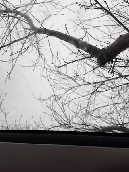 Ich mache gerade einen Mini-Foto-Kurs mit. Da hieß es: Perspektiven ändern! Das ist aus dem Auto durch die nciht ganz saubere Panoramascheibe hindurch – unser Pfirsichbaum – noch weit vom Frühling weg