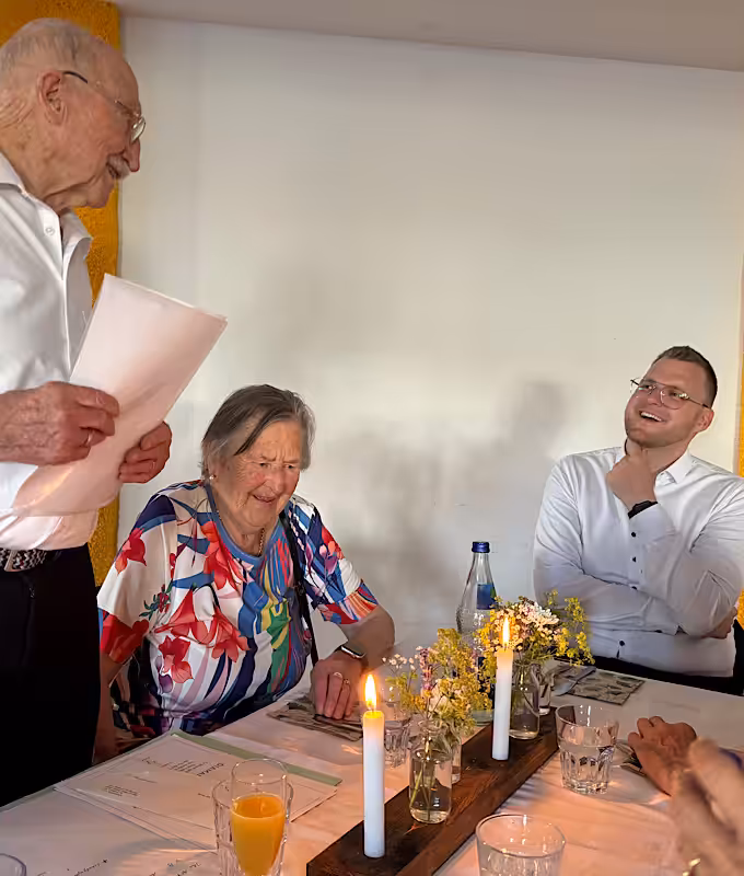 Mein Vater wollte feiern. Meine Mutter nicht so. Aber der Abend war schön. Der Bürgermeister kam – und blieb sogar. Vermutlich ist es selten, dass Menschen in dem Alter noch so fit sind.