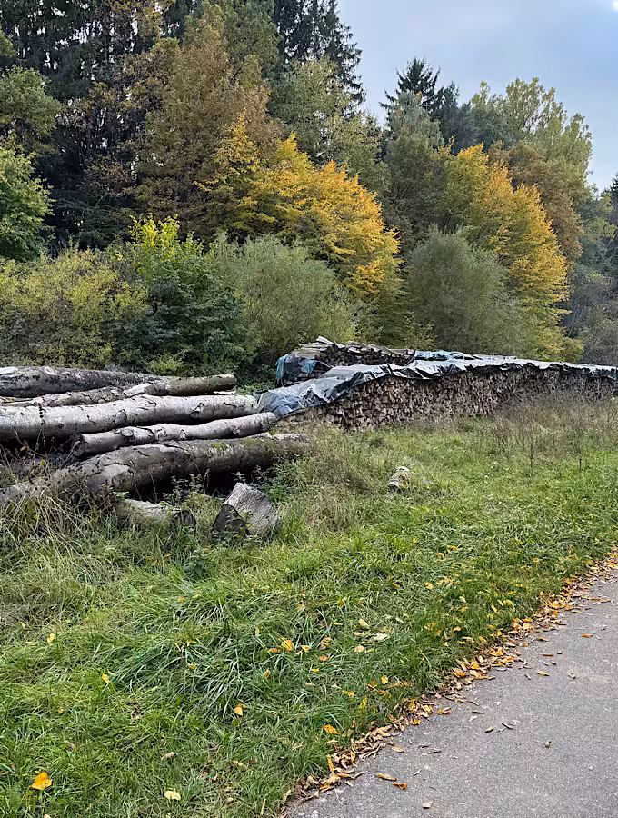 Abgeschnittene Bäume: Holz. Etwas, das mich über unsere Sprache nachdenklich weiter fahren lässt.