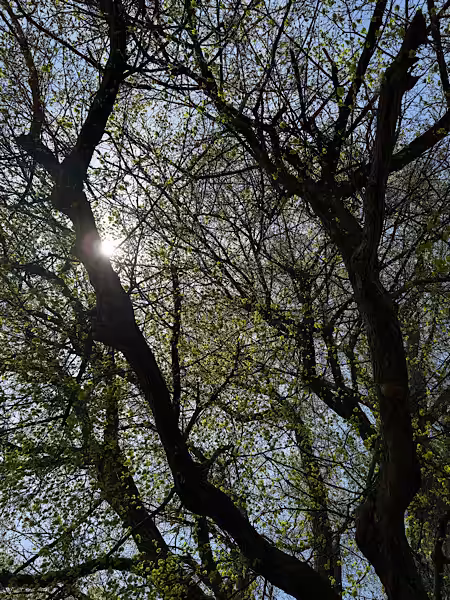 Blick in die Nähe nach oben: Der Lindenbaum -erste Blätter