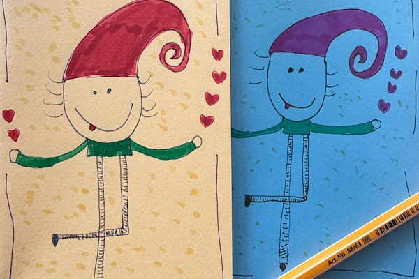 Ich male auf Karten, die ich hervorhole, wenn Feste oder besondere Anlässe anstehen, und wähle dann aus, was für die jeweilige Person passt. Diese Figur ist für meinen kleinen Enkel gedacht. Er wird bald sieben.