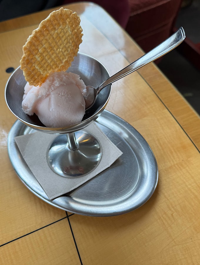 Quitteneis aus dem Cafe Mieze – schmeckte super: leicht, cremig, quittig, frisch, nicht zu süß